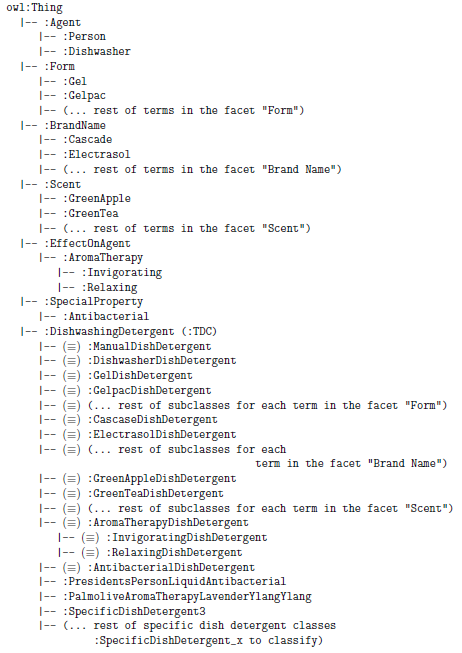 | Description | OWL representation of the "Dishwashing Detergent" domain concept Faceted Classification Scheme applying the Normalization ODP.